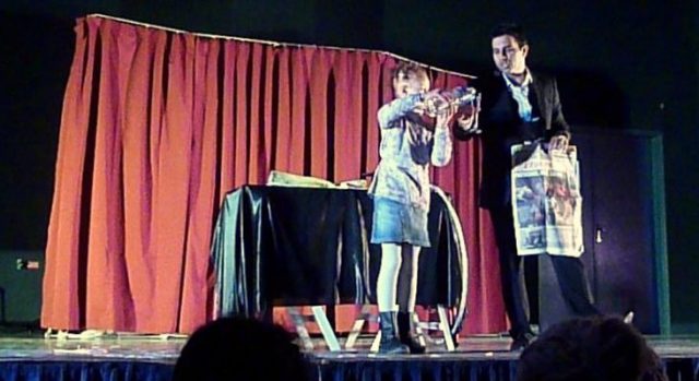 « Transplanation » d’objets à travers la salle, l’époustouflante grande illusion de la catalepsie, apparitions, transformations.